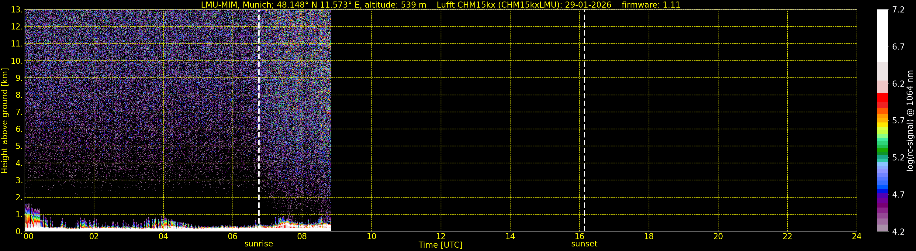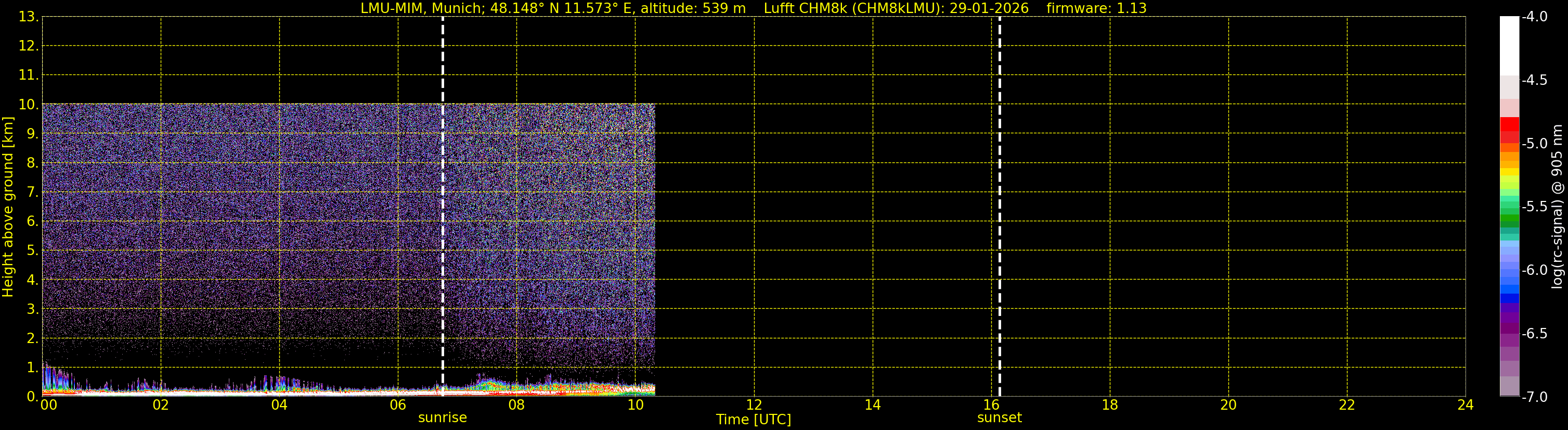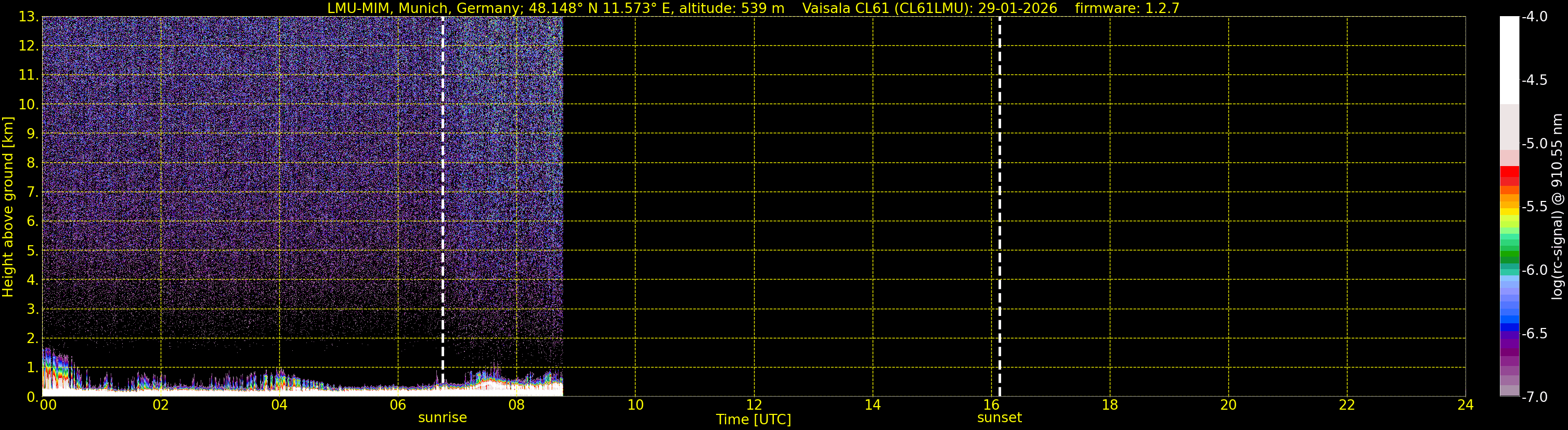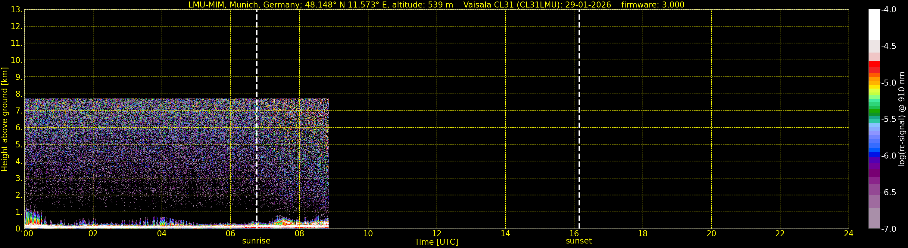 We are grateful that we are allowed to process the corresponding data (since 1. June 2010) of the CHM15k ceilometer located at the Umweltforschungsstation Schneefernerhaus on Zugspitze (UFS, altitude 2712 m, 93 km south of Munich), owned by the UFS and operated by the German Weather Service for comparison.